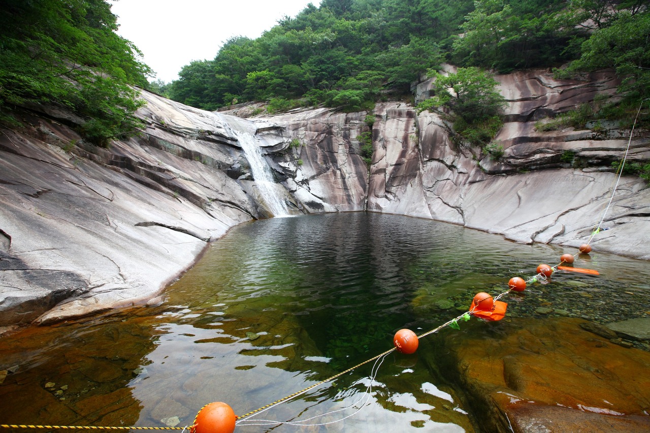 가지산의 물줄기인 호박소 계곡은 한국 100대 물 중 하나입니다. 그것은 아름다운 풍경과 수십만 년 동안 씻겨 내려간 화강암 위에 쏟아지는 계곡 물로 유명합니다. 호박소는 폭포가 속이 빈 못을 방앗간의 절구인 호박처럼 보이게 만들기 때문에 이름이 지어졌습니다. 하얀 바닥을 가진 폭포는 경치만 봐도 여러분을 행복하게 만듭니다.